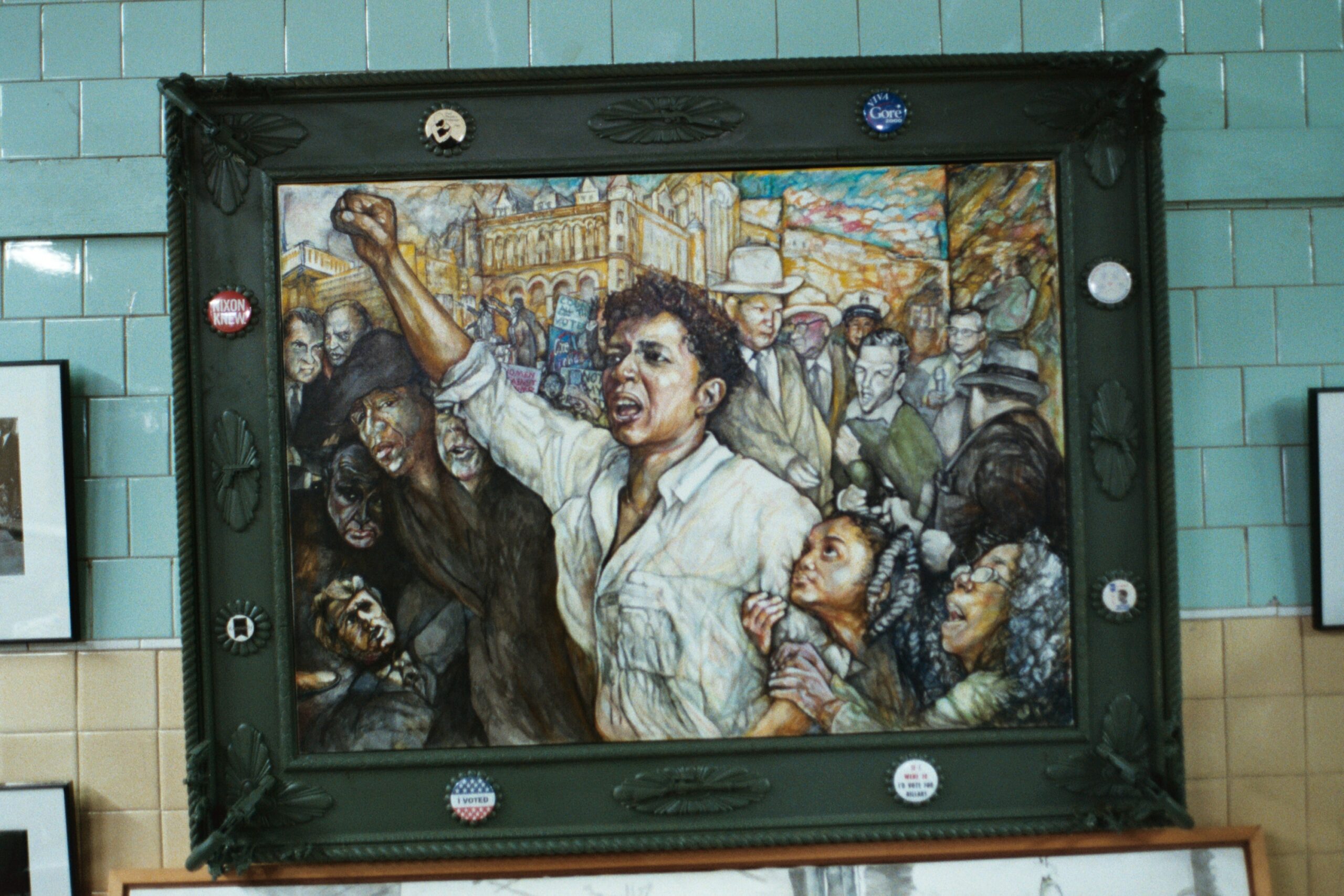 I have a block of paintings that I did, but most of them I want to keep together. There’s eight or nine of them that are … what I call “new fakes” — rather than “fake news.” They’re retellings of famous artworks that I loved as a kid. The woman in white [“The White Girl”] is a Whistler at the National Gallery; “The Uprising” is a [Daumier] painting at the Phillips Collection. So they’re all things I saw as a kid. I had stories going in my head, seeing those paintings. I’ve remixed those stories and spit them out as political contemporary.